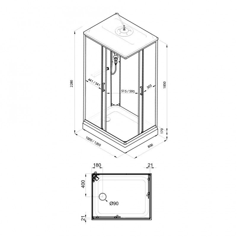 Душевая кабина "Квадро 120*80 А" ПОЛОСЫ,бел, прямоуг., низ. поддон ДН4 (8мест) TRITON