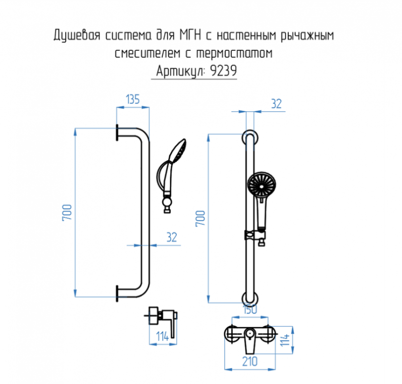 Душевая система для МГН с настенный рычажным смесителем с термостатом 9239 по низкой цене в наличии в интернет-магазине сантехники «Водолей» в Набережных Челнах. Мы предлагаем самую низкую цену на душевые стойки с верхним душем производителя . Приобрести Душевая система для МГН с настенный рычажным смесителем с термостатом 9239 выгодно Вы можете on-line на нашем сайте, или отправив заявку по почте, а также по телефону 8 (927) 672-07-77 или в магазине.