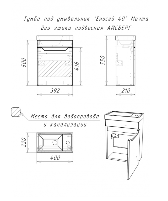 Тумба подвесная под умывальник "Енисей 40" Мечта без ящика АЙСБЕРГ DM2308T по низкой цене в наличии в интернет-магазине сантехники «Водолей» в Набережных Челнах. Мы предлагаем самую низкую цену на тумба под раковину производителя Домино. Приобрести Тумба подвесная под умывальник "Енисей 40" Мечта без ящика АЙСБЕРГ DM2308T выгодно Вы можете on-line на нашем сайте, или отправив заявку по почте, а также по телефону 8 (927) 672-07-77 или в магазине.