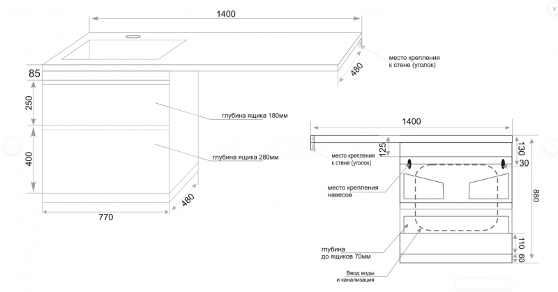 Тумба для комплекта Style Line Даллас 140 Люкс, напольная, 2 ящика Style Line