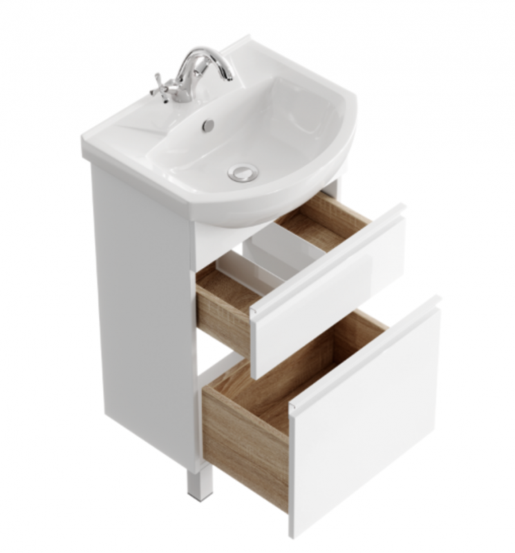 Rodos T5/2н КОМПЛЕКТ напольный, цвет белый + рак. Элеганс 50 состоит из:(Тумба под умывальник напольная Rodos T5/2н, цвет белый; Раковина Элеганс 50; )
