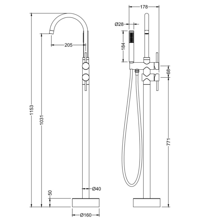 Смеситель для ванны напольный 2300/00Y-CR chrome TIMO Timo Saona Timo