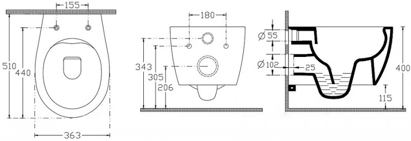 Унитаз подвесной, 4.11004.20 FANTASY, rimless, без сиденья, 510x363мм, белый (269463) Allen Brau