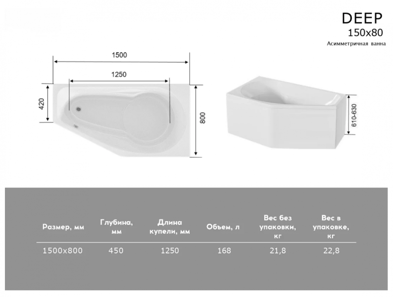Акриловая ванна "DEEP" 150х80 L по низкой цене в наличии в интернет-магазине сантехники «Водолей» в Набережных Челнах. Мы предлагаем самую низкую цену на ванны акриловые производителя 1Marka. Приобрести Акриловая ванна "DEEP" 150х80 L выгодно Вы можете on-line на нашем сайте, или отправив заявку по почте, а также по телефону 8 (927) 672-07-77 или в магазине.